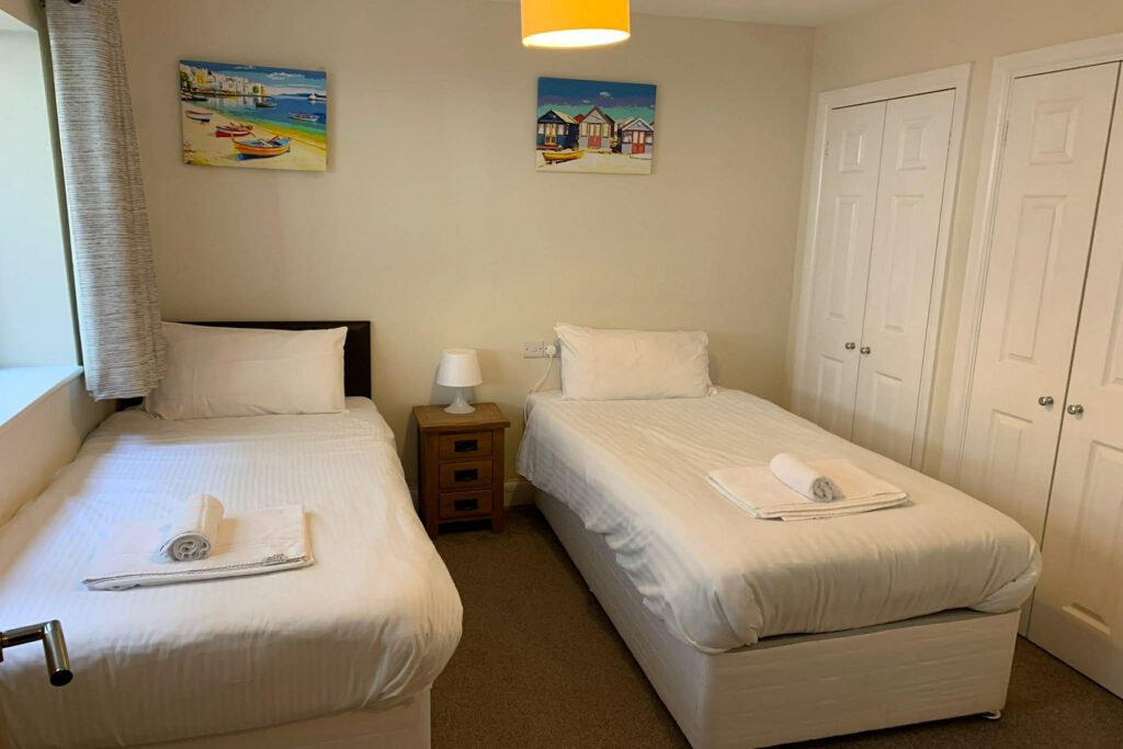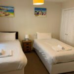 The apartment is thoughtfully laid out to maximise both space and comfort, featuring a bright and airy open-plan living room, kitchen and dining area designed for modern coastal living. Large windows invite in an abundance of natural light, while also maximising the surrounding views. The well-equipped kitchen is ideal for self-catering stays, and the bedrooms are generously proportioned, offering a peaceful retreat for guests after a day by the sea. A contemporary bathroom and high-quality finishes throughout complete the interior. Electric, Water, and Wi-Fi are included in the annual service charge, which also covers building insurance.